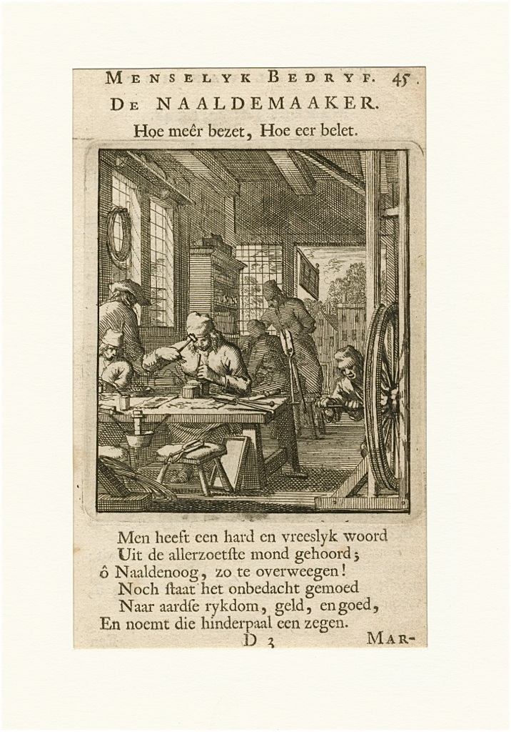 De naaldemaker Jan en Casper Luyken 1694 kopergravure blad 16x10 cm. € 25.-