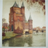 Haarlem Amsterdamse poort Dirk Harting 1884-1970 ets 23x35 cm. € 150.-