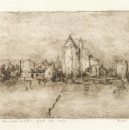 Santpoort Ruine van Brederode ets 22x13 cm. Evert van Hemert € 65.-