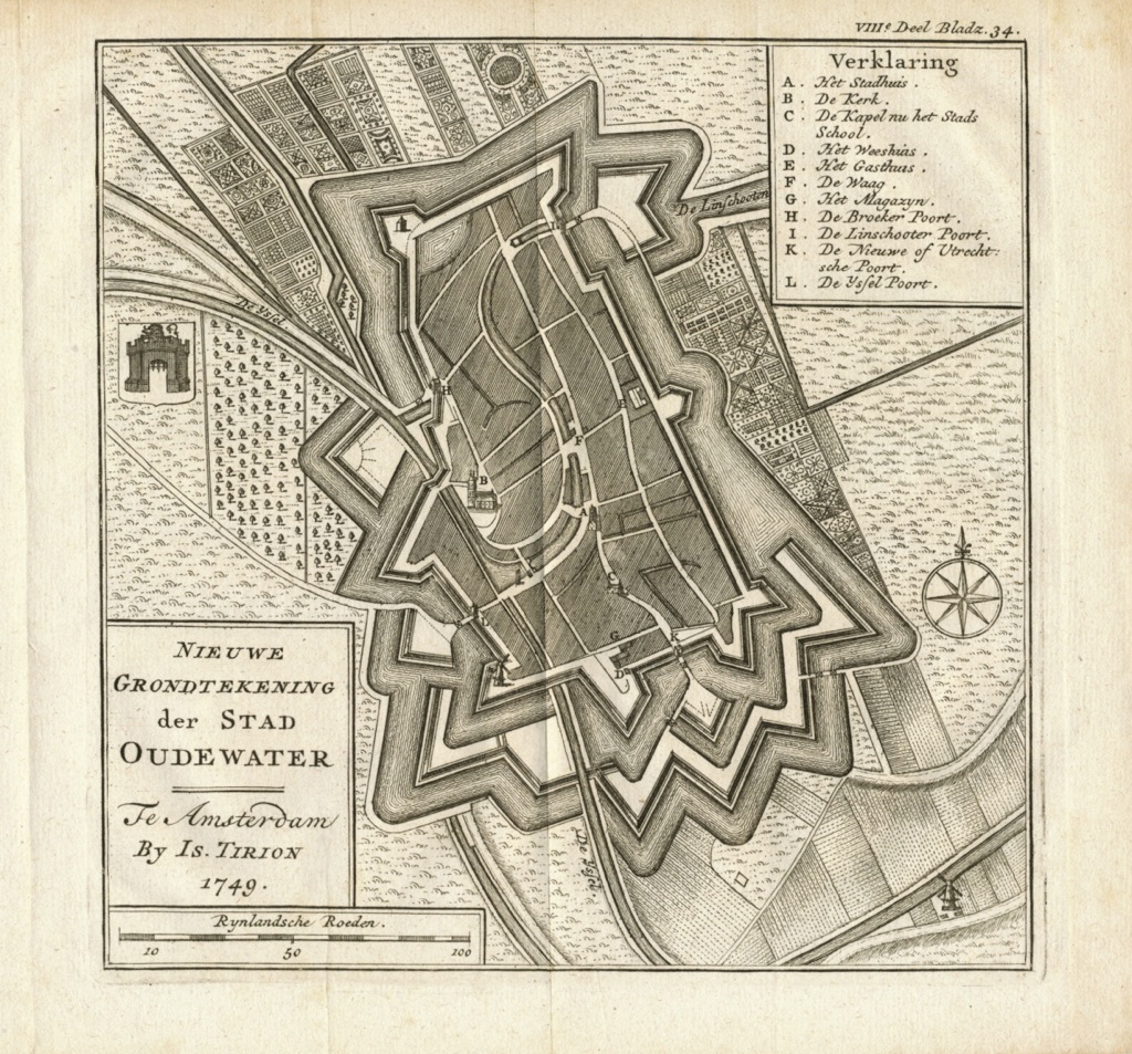 Oudewater Isaak Tirion 1705-1765 kopergravure 1749 / 18x18 cm. € 50.-